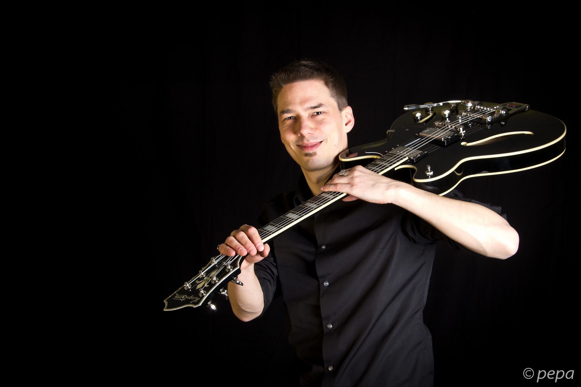 Lars Martens ist so etwas wie die gute Seele der Musik an dieser Schule. Er ist nicht nur Gitarrenlehrer, Coach der Bands und Rhythmusgruppen, sondern auch Arrangeur für kleine Besetzung bis Big Band, Tonmeister, Vermittler, wenn es mal irgendwo klemmt, kurz: